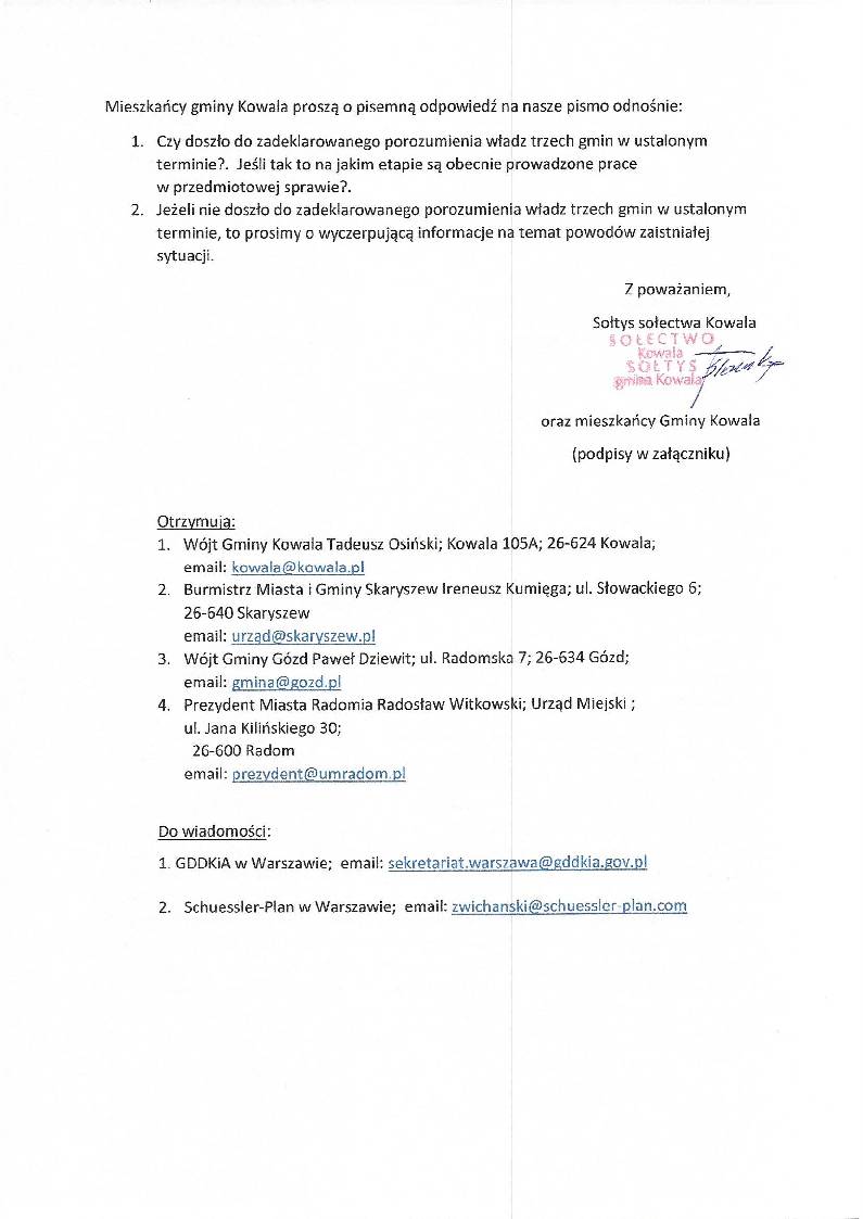2 myśli na “Pismo dotyczące spotkania władz gminnych Kowali, Gozdu i Skaryszewa z dyrekcją GDDKiA”
